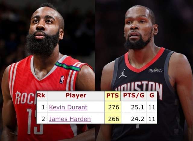 杜兰特今夏加盟火箭,本赛季的状态依然强势,加上面对开拓者的30分,效力火箭生涯的前11场比赛得分来到276分,这也让他占据队史第一的位置。此前这个纪录是属于詹姆斯-哈登的他,当初他加盟火箭的前11场比赛,轰下了266分,不过这一次被杜兰特给反超了。不得不说,火箭今夏引进杜兰特还是非常正确的,让球队多出了一位稳定的得分手,关键时刻也有了依靠。
