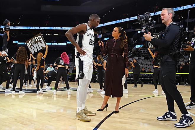本场比赛中,被马刺下放到NBA发展联盟赛场进行锻炼的双向合同后场新星大卫-琼斯-加西亚(David Jones-Garcia)完成了自己在奥斯汀马刺的首秀,他在首秀中的表现也还是相当不错的。琼斯全场出场28分钟,投篮12中6,三分线外6中2,罚球11中10,拿下了全场最高分31分外加8篮板4助攻1抢断的数据,还有8次失误和2次犯规,正负值为+5。加西亚在进攻端还是展现出了相当不错的突破能力和得分能力,他也是能够给对手内线制造巨大的威胁,他也具备一定的投射能力。琼斯在防守端的表现也是值得肯定的,他也是能够起到一些防守方面的效果。琼斯在攻防两端其实都有着不错的表现,当然了,如果他能够控制自己的失误数,他的表现还能够更上一层台阶。