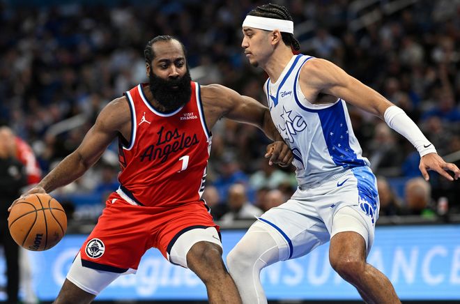 快船与魔术算是同病相怜,两队都有核心遭遇伤病无法出战,不过魔术的阵容更为年轻可用之人更多,而快船这边就只剩下一个36岁的老哈登苦苦支撑,首节哈登5中2+罚球7中5拿到11分3篮板3助攻,快船全队合计只有24分,首节打完魔术多点开花30-24领先。