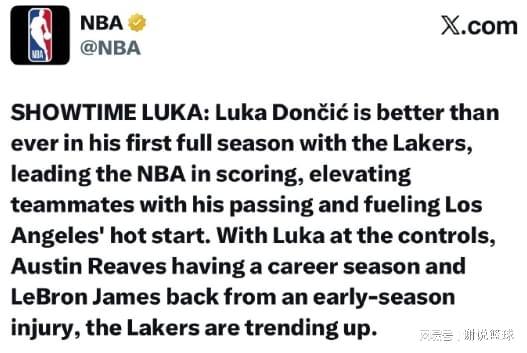 根据NBA官网的报道,湖人迎来多重利好,队内氛围相当融洽,建立了稳定赢球文化。其中作为湖人核心,东契奇两细节可喜,这是他转投湖人后,迎来的首个完整赛季,但状态却十分出色,除了得分榜领跑全联盟外,还完美串联起队友,让湖人高歌猛进。要知道过去几个赛季,东契奇固然也强,但开局多少会有点慢热,需要花时间去找状态,特别上个赛季尤为明显。当然这也是因为过去,东契奇长期打很多比赛,除了跟随斯洛文尼亚国家队出战以外,去年在NBA还打了总决赛,体能消耗可想而知。但如今情况有所改变,上赛季湖人首轮游,而今年夏天东契奇出战男篮欧洲杯,但斯洛文尼亚较早出局,这终于让他有了更多休息和调整时间。