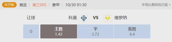 双方上赛季交手中,科莫主场3:2击败对手,客场则与对手战平,比较有优势。本赛季科莫实力和状态都更胜一筹,本场胜算自然更大。机构初始给科莫1.0让步居多,同样更看好科莫胜出。