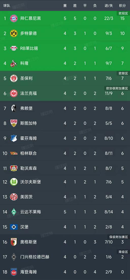 德甲最新积分战报:汉堡首胜,拜仁轰4球,莱比锡3连胜